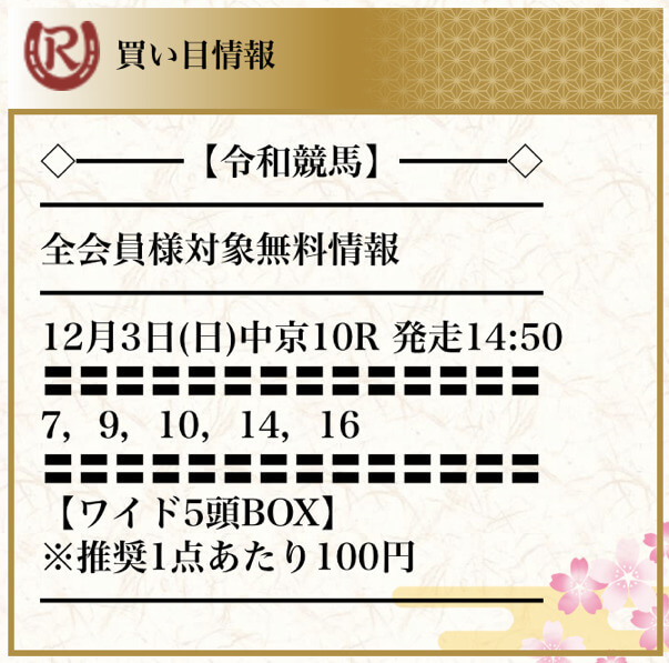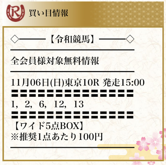 令和は買い目だけポンって送ってくれるから素人でもできるし好きだね