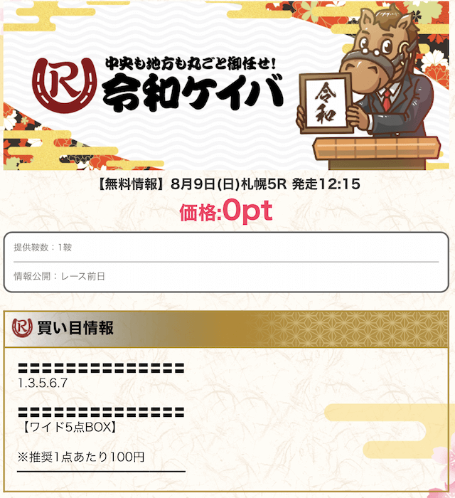 稼ぐことが難しい無料予想ですが、令和ケイバは違うかもしれません。