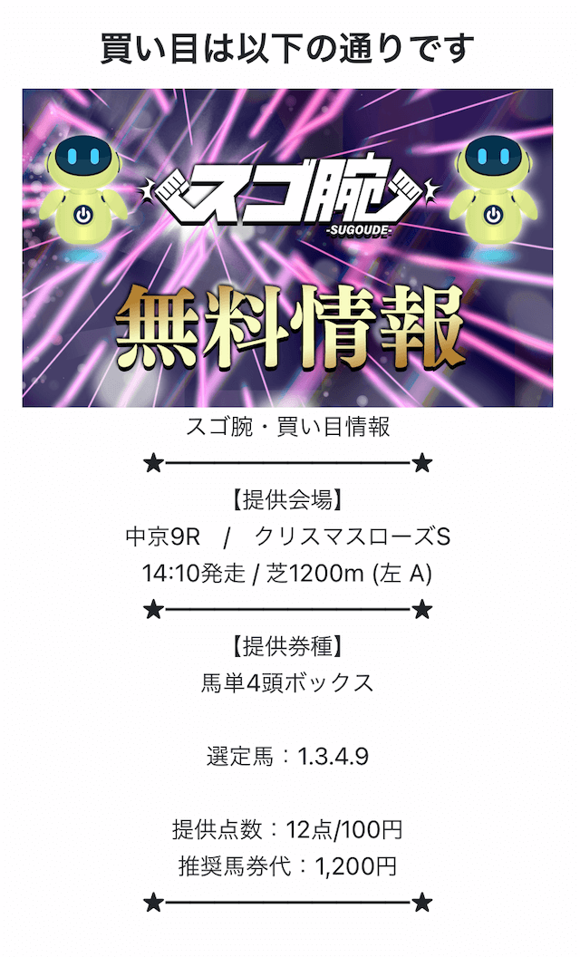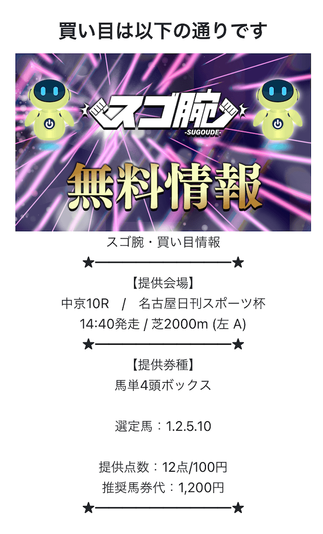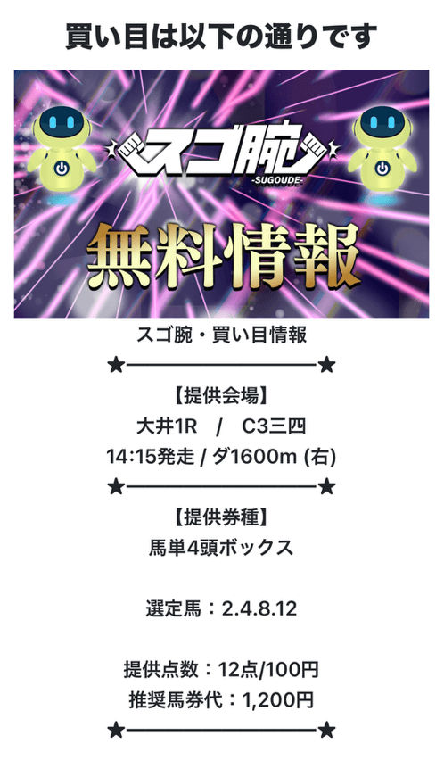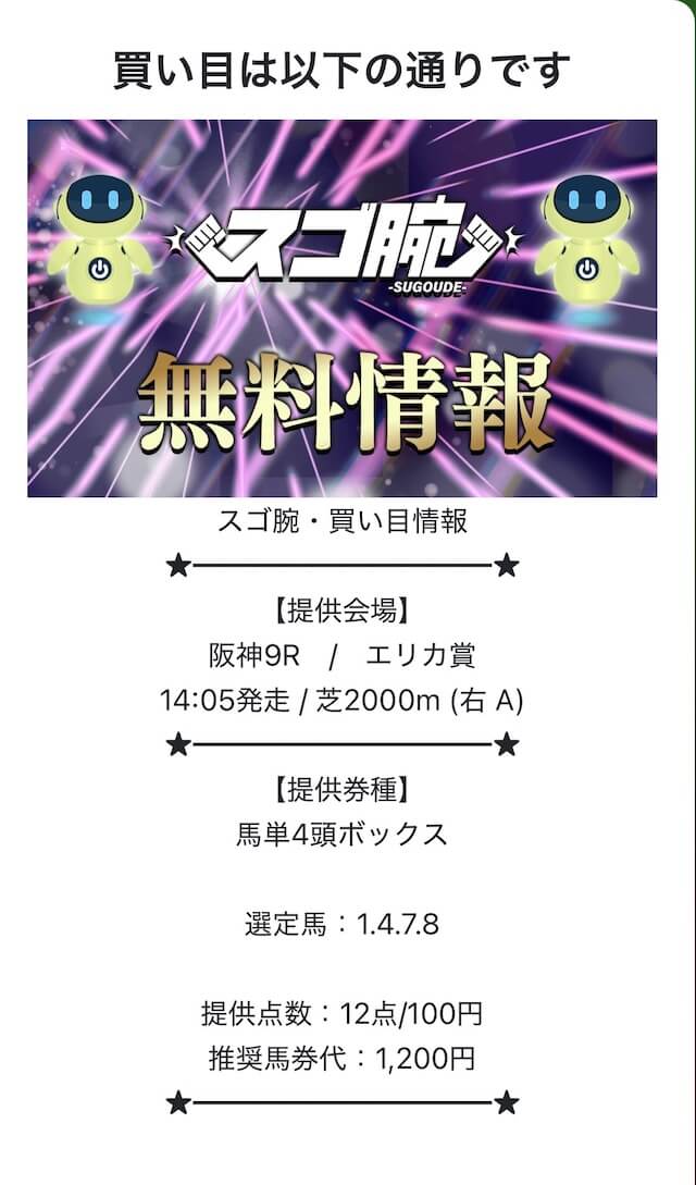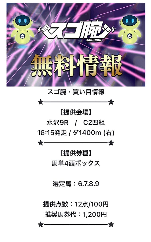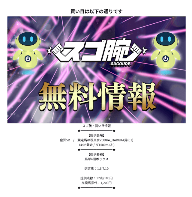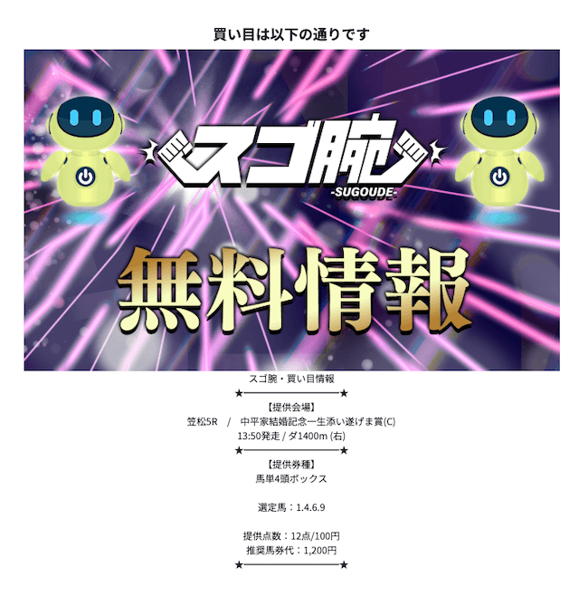 スゴ腕の無料予想は、無料予想ながら当たればかなりの高配当が期待できるそうです。