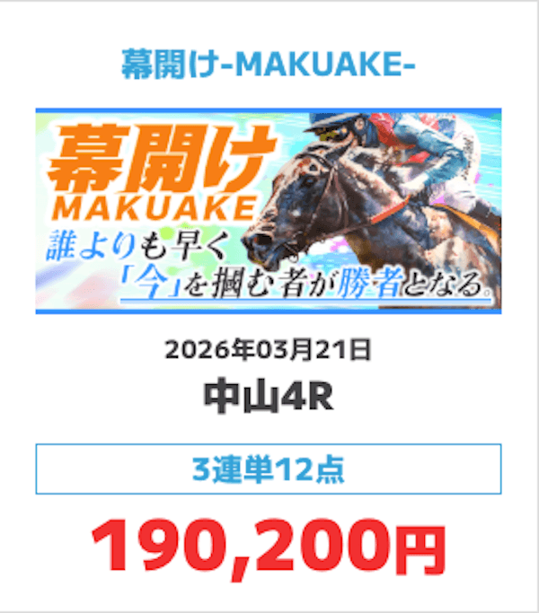 | 2026/03/28/ 中山 | | 10,000円 | 23,700円 | +13,700円 |