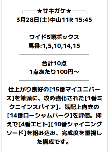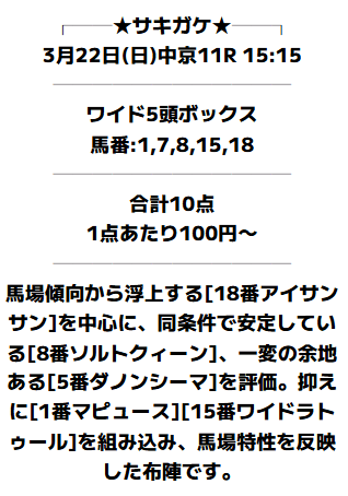 この1レースだけを見ても、「しっかりハマれば大きく狙える予想」であることは十分に感じられる内容といえるでしょう。