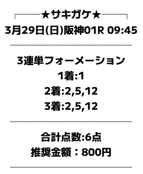 サキガケは②をしっかり軸に入れつつ、もう1頭に45.3倍の⑥リサシテーションを抜擢するという攻めの采配です。