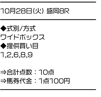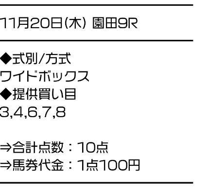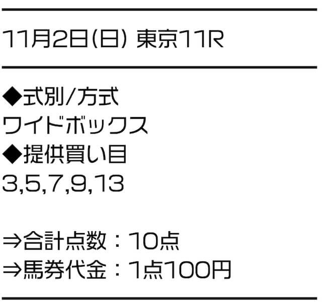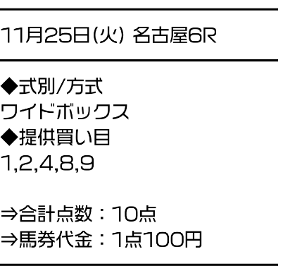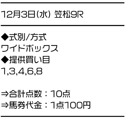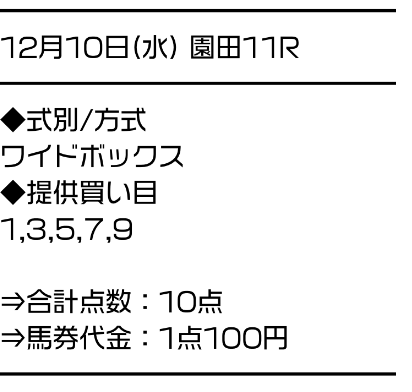 予想の買い目には1番人気から9番人気まで含まれており、波乱の展開を想定しているそう。