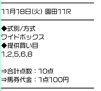 無料予想は何度か参加させてもらっています!的中するし、払い戻しも数万円は基本的に超えるので継続して使っています!地味に1日の配信レース数が多いのも嬉しくて、先日3レース使って1日13万円程度の利益になった日があったので思い切って有料予想買っちゃいました笑