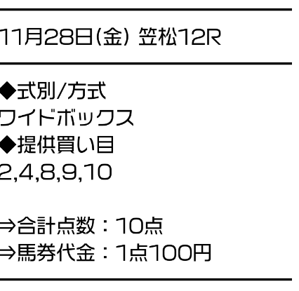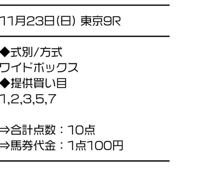 ワイド5頭ボックスの予想なのでそりゃそうかとも考えられるんですけど、しっかり当たるし配当も結構良いので嬉しいです!