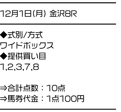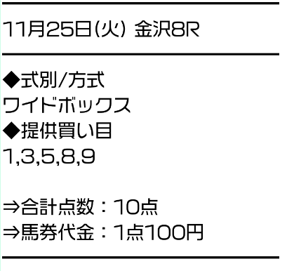 券種ワイドって確実に的中取りこぼさないようにするための買い方だろうし、当たるけどすこし物足りないっていうのが素直な感想です