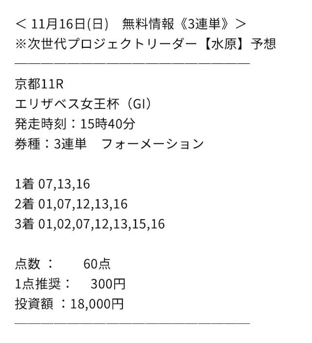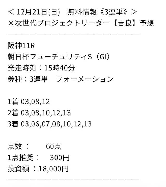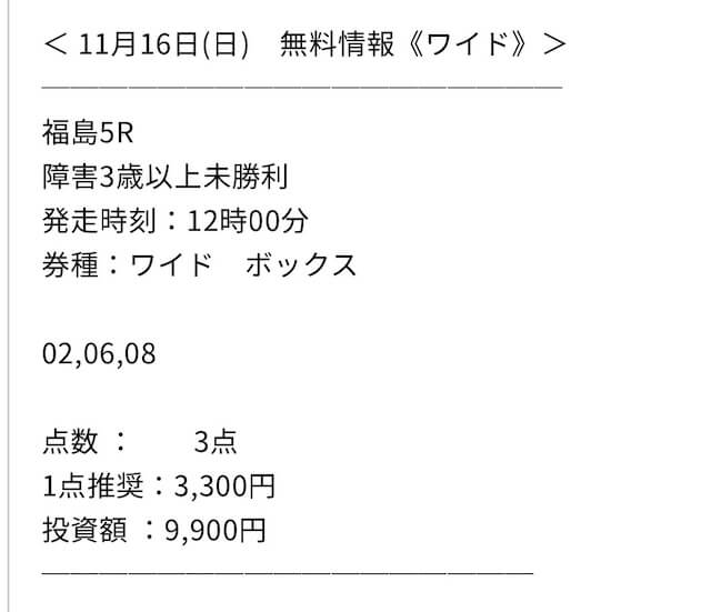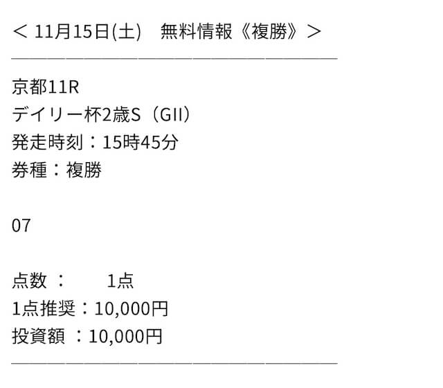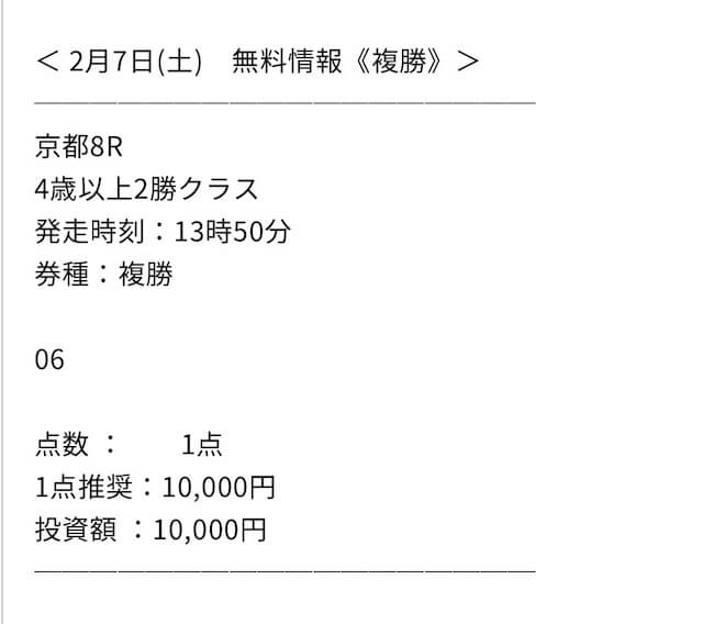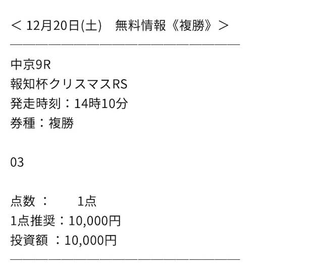 無料予想では思いも寄らない好成績を残しましたが、有料情報は果たして。