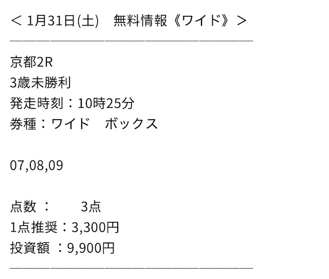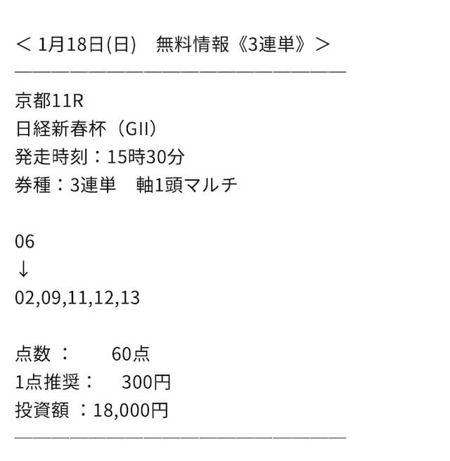 値段が安い情報でもちゃんと的中するね。新年早々100万馬券当たったから、ここからはのんびりやっていきます!!