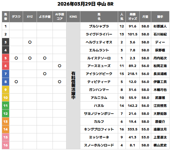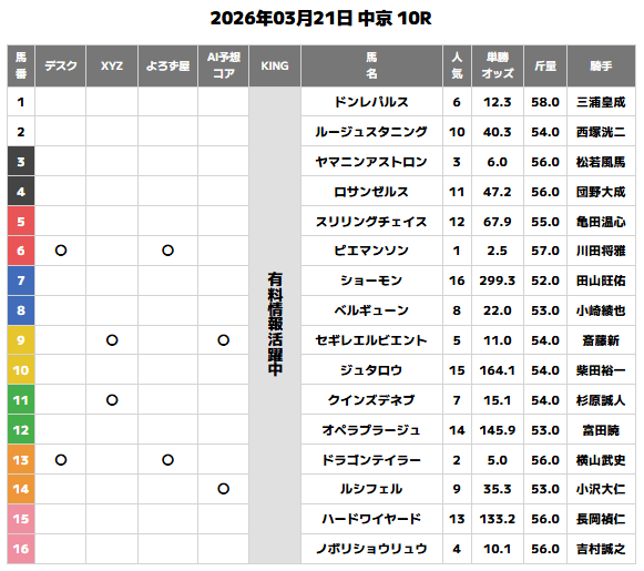 今回の検証では、複数ある予想情報の中で、どの情報がより的中に結びついているのかを比較していきます。
