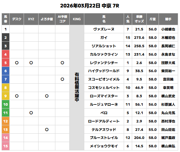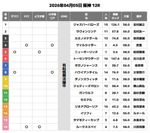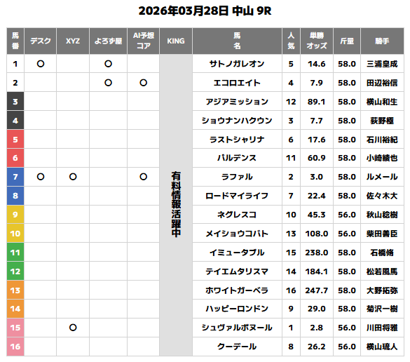 | 日付 | デスク | XYZ | よろず屋 | AI予想コア |