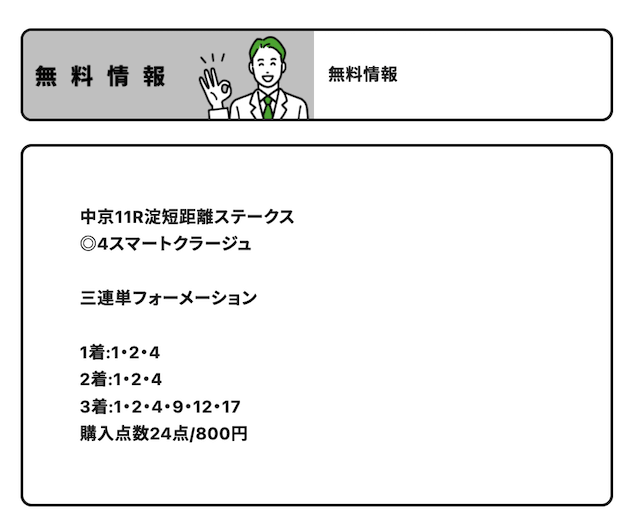 無料予想はあくまでもお試しなので、文句をつけるつもりはありませんが・・・。