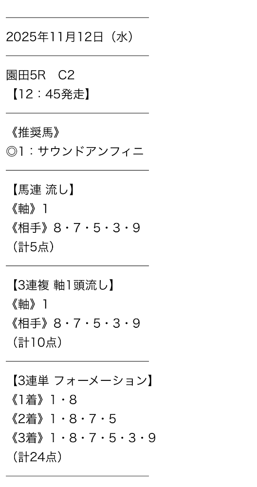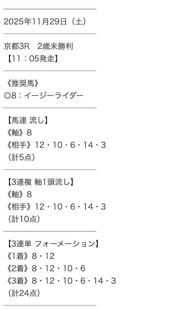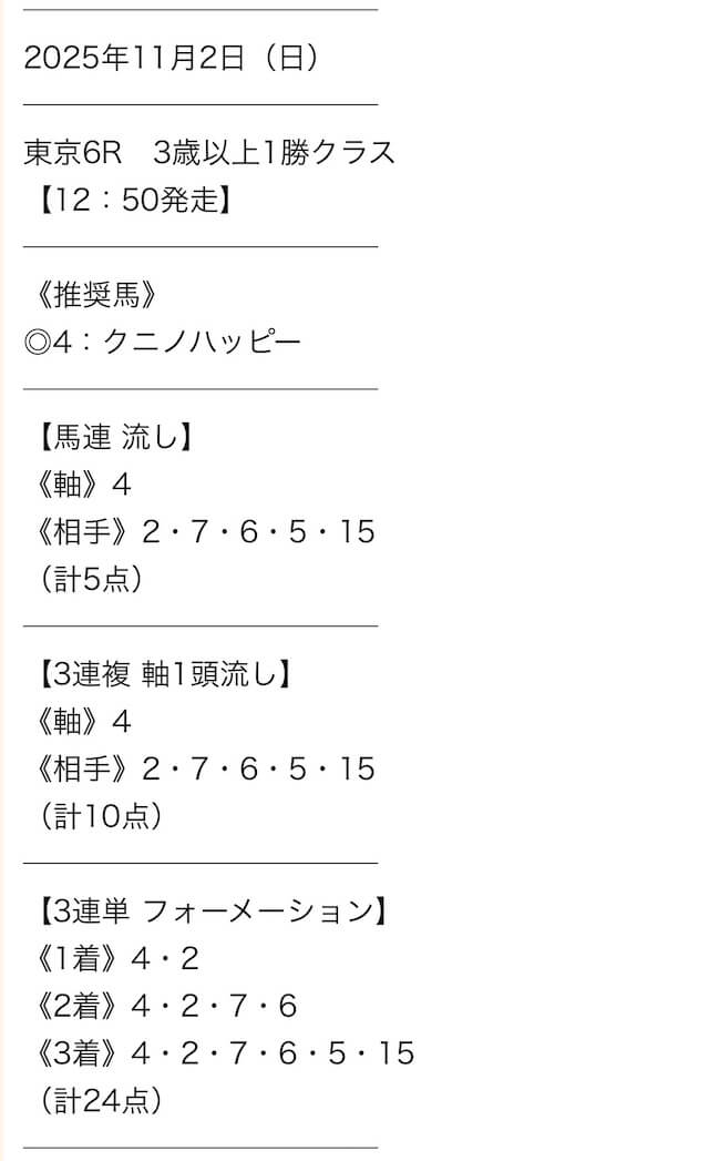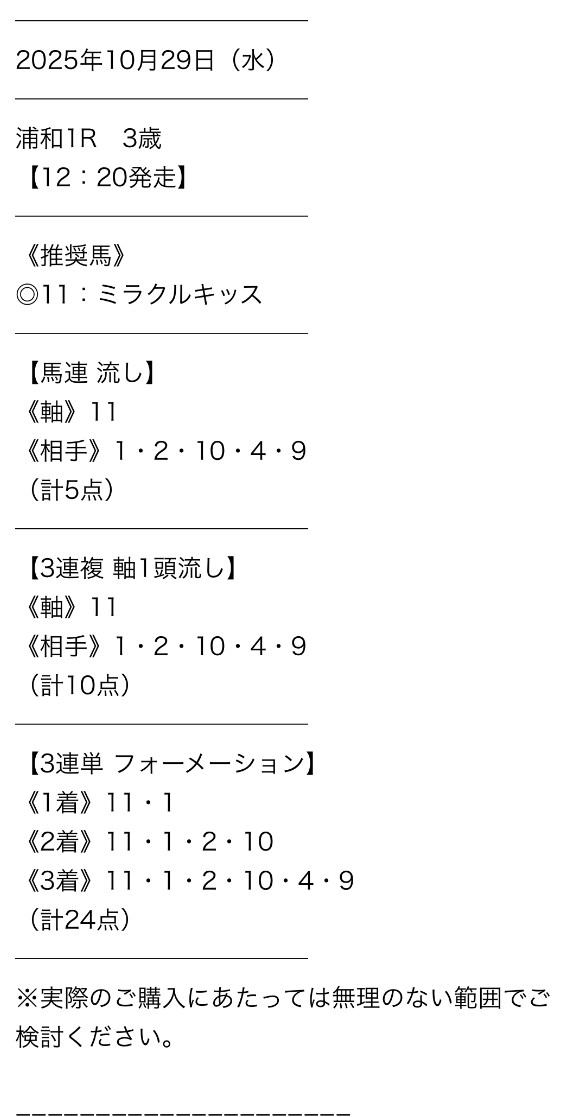 最初は疑ってて100円から馬券買うようにして負けても痛くない感じで使ってたけど今はもう毎回1点1000円で勝負しています!