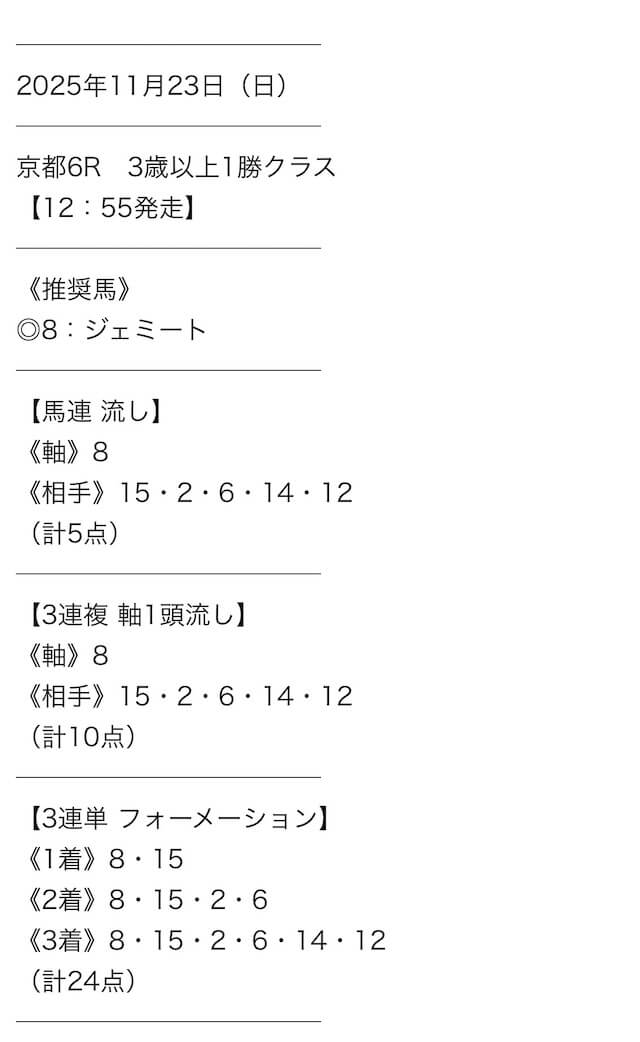 公開された買い目はこちらです。
