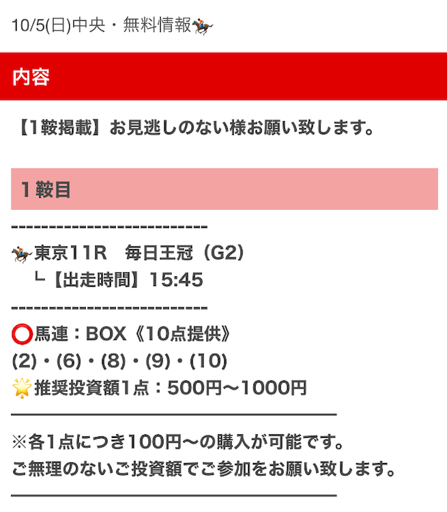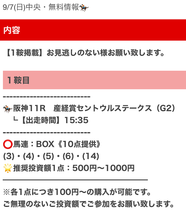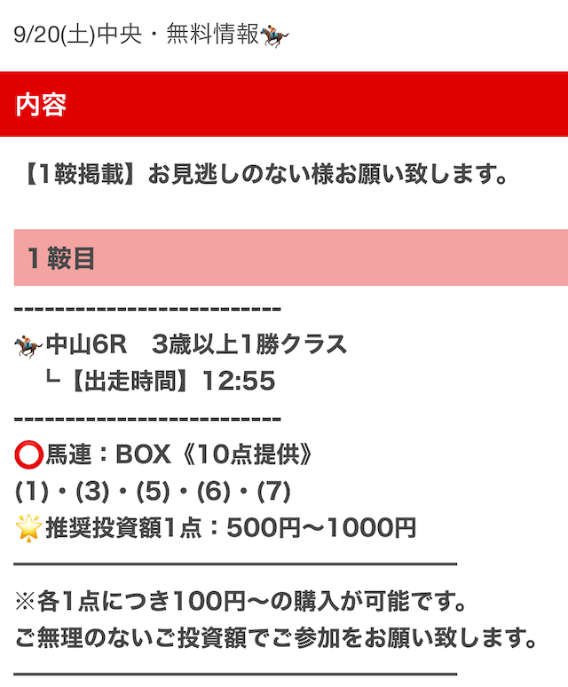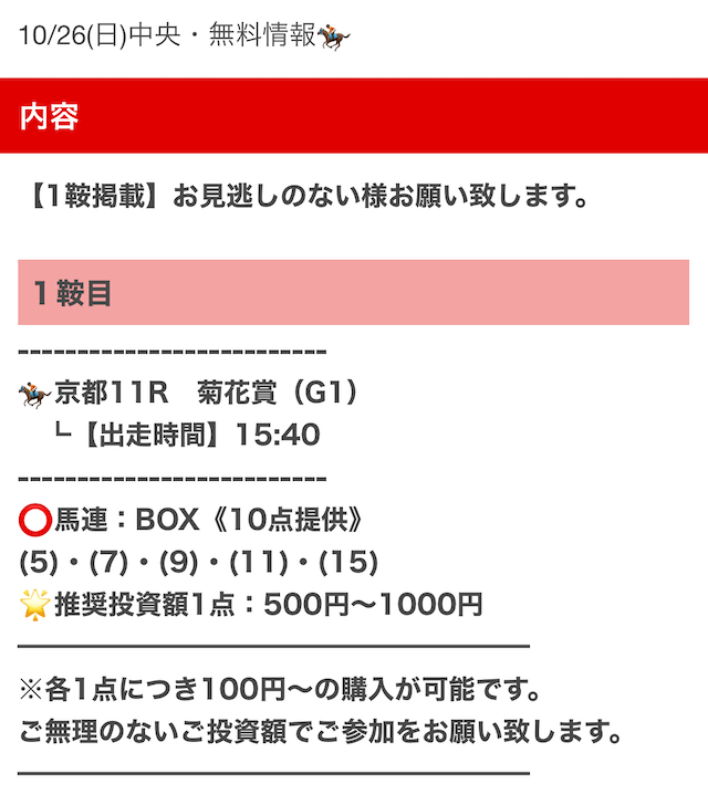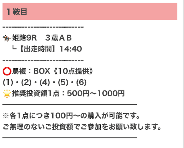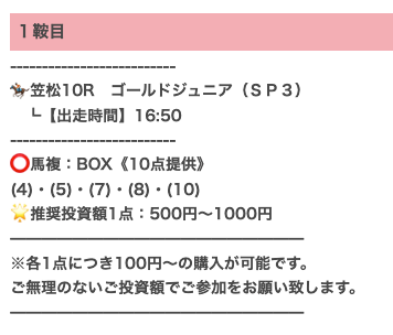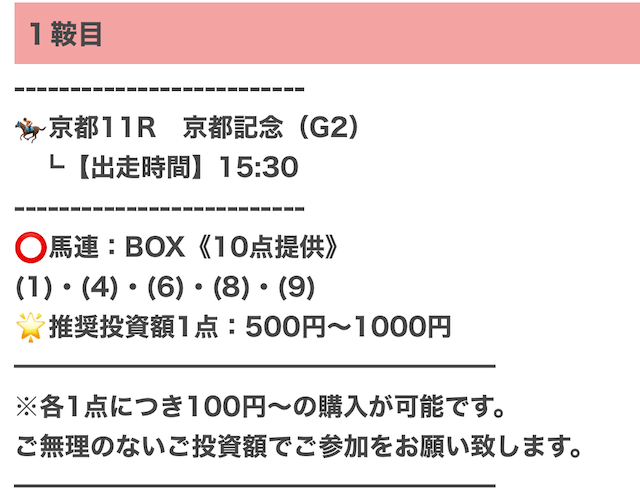 実際に公開された買い目はこちらです。