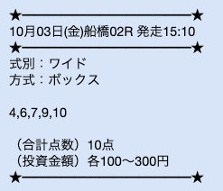 無料予想初参加で外れたのは地味にショックやったな。まぁ無料だから文句は言えないけど。(今は勝ってるし)