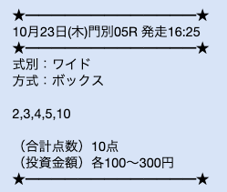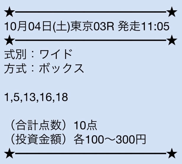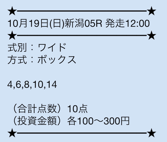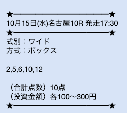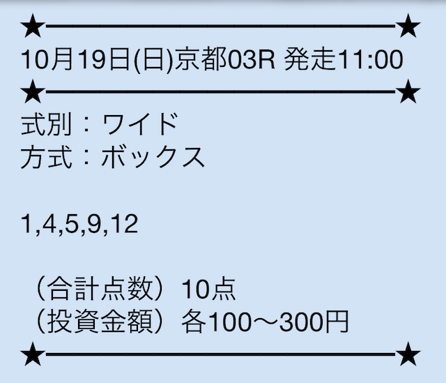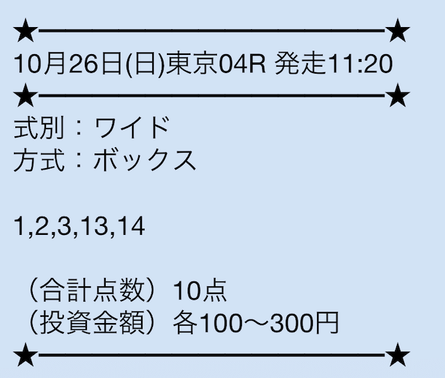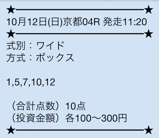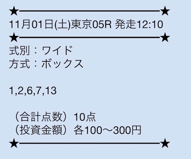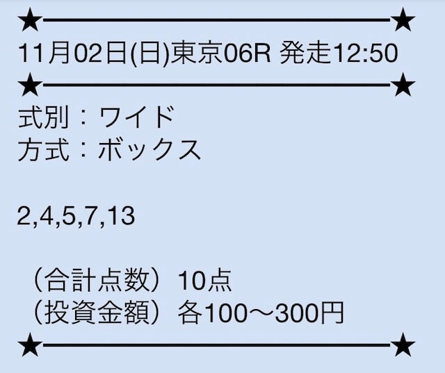 1,2番人気が馬券外となる意外な結果でしたが、見事に読み切りました。