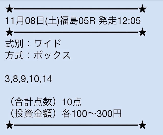 選出も前レース同様に穴馬と人気馬をバランスよく選んでいます。