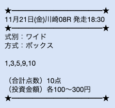 今レースは、幅広く馬を選んでいる所から荒れる展開を予想しているのでしょうか。