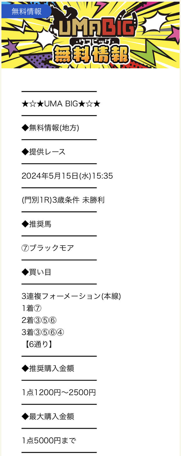 まずは、ウマビッグの無料予想の詳細を確認していきます。