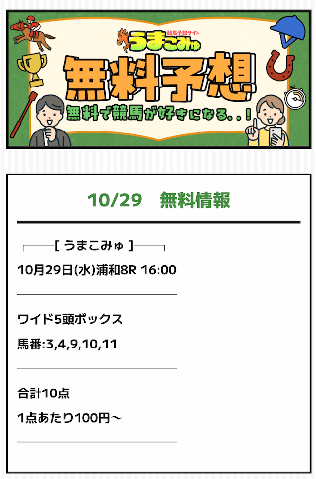 うまこみゅの無料予想は当たらない?10万円を投資して徹底検証