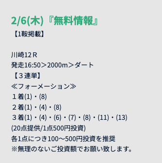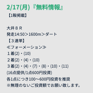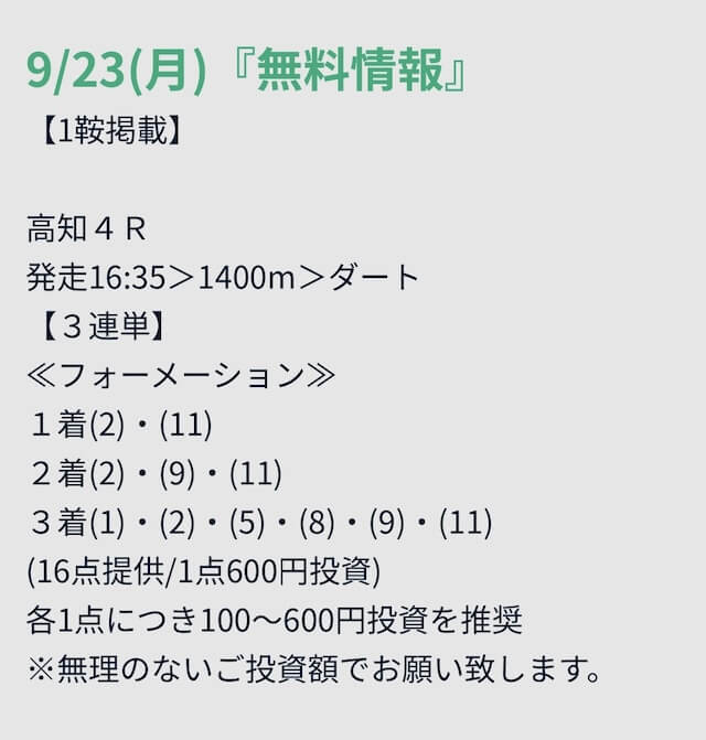 無料予想は競馬予想サイトが善意で公開しているお試し予想に過ぎません。