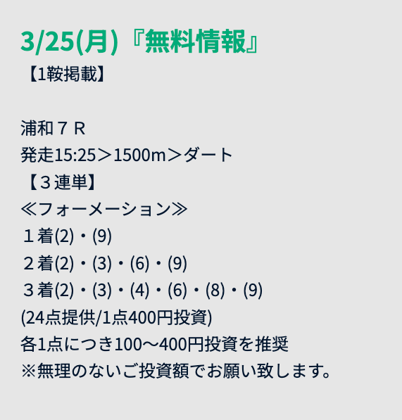 万馬券が的中してめちゃくちゃテンション上がった!回収率も高くてしっかりプラスになったし、低価格のプランも用意されてるから、最初は気軽に試せるのもありがたいポイント。コスパ重視の人にもいいと思う!
