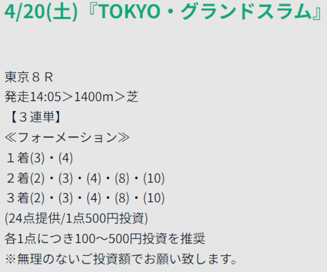 購入したのは「グランドスラム」という有料情報です。