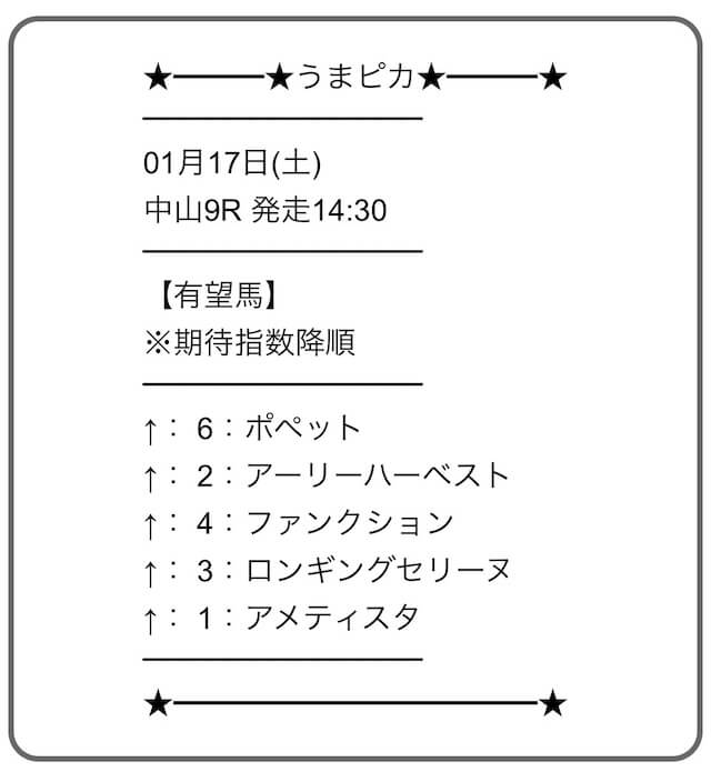 好走が期待できる穴馬の選出だけでなく、危険な人気馬もしっかり見抜いたうまピカ。