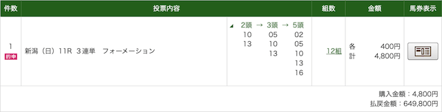 超穴馬の好走を三連単、それもたった12点で見事に的中。