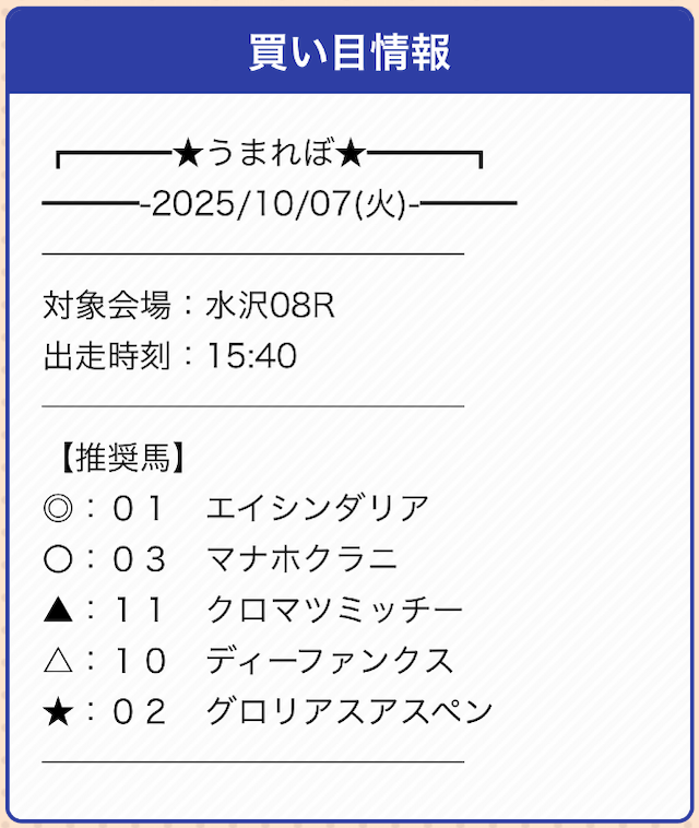 情報料って最初は高いと思いがちだけど、的中を積み重ねていけば安い投資だと思えるようになります。