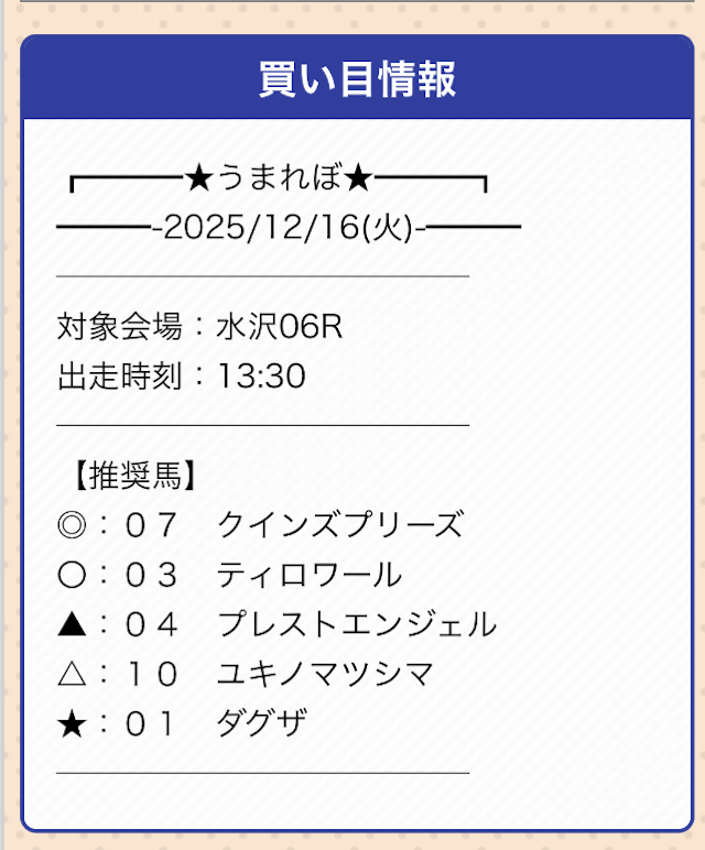 うまれぼのおかげで、初心者の私でもしっかりと競馬で勝てるようになりました。予想の質が高いです!