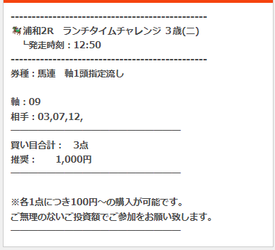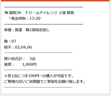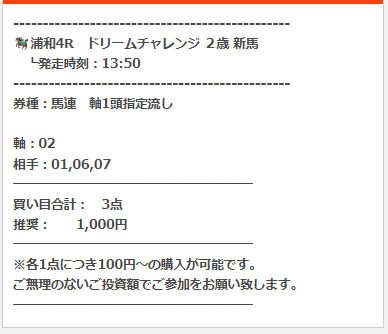 うま遊勝の有料予想「スタートダッシュプラン」1レース目