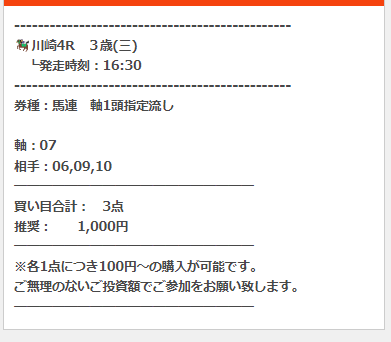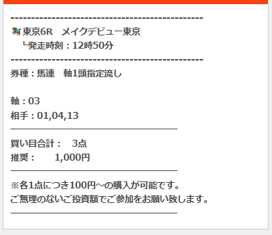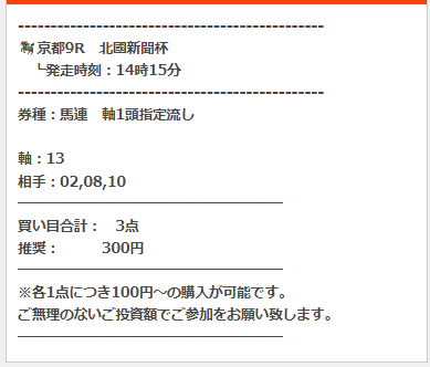 一報、有料予想では、プラン料金と馬券代がやや高額な点がネックですが・・・