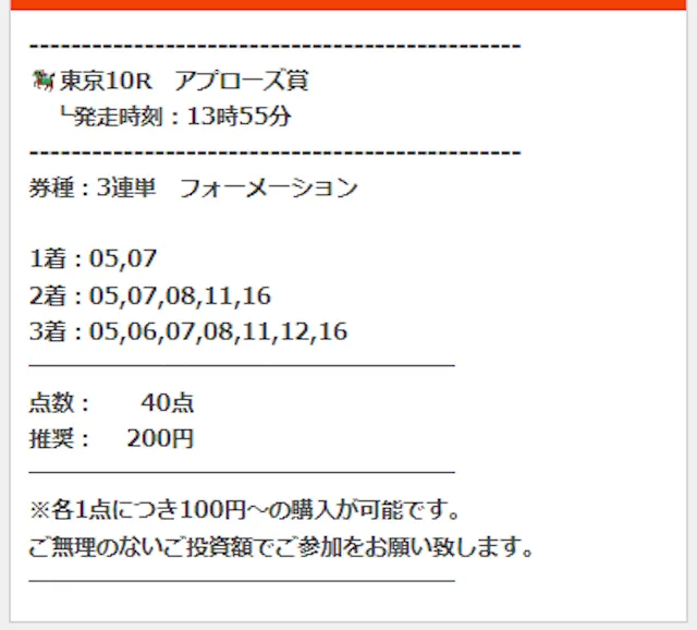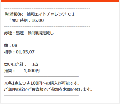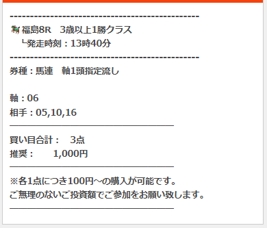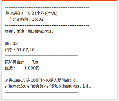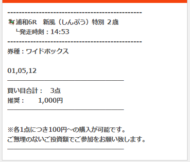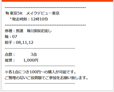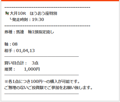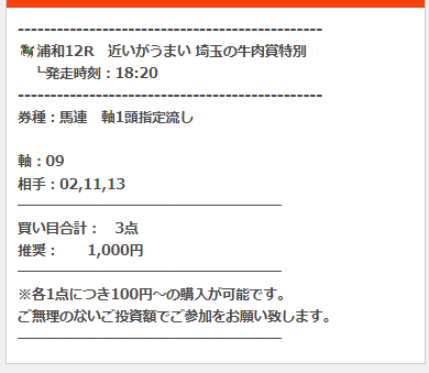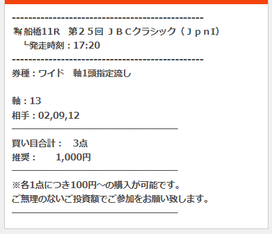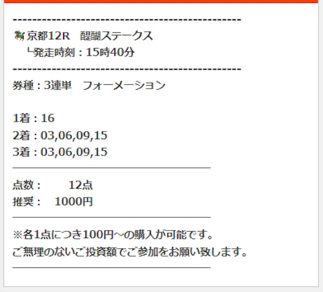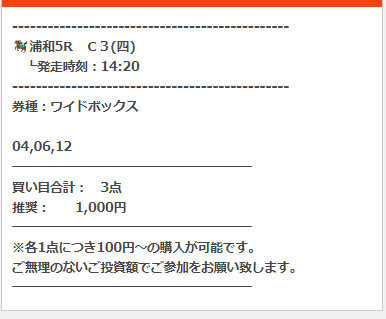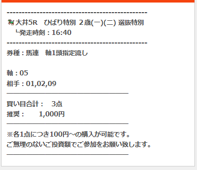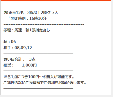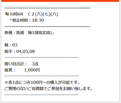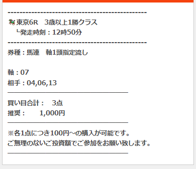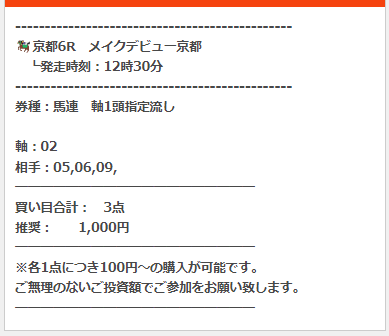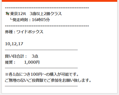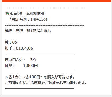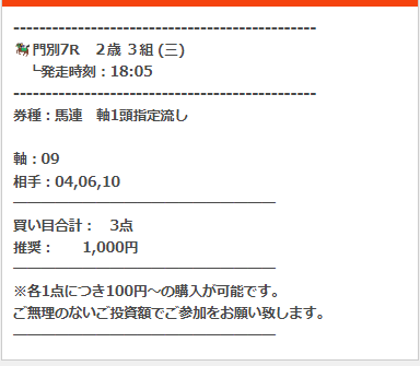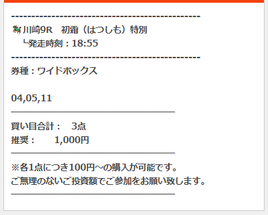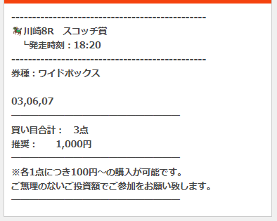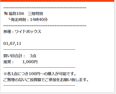 公開された買い目はこちら。