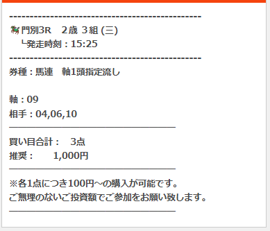 うま遊勝の有料予想「スタートダッシュプラン」3レース目