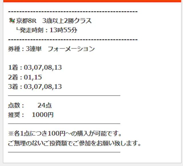 - 無料予想は少額の出費で挑戦したい方