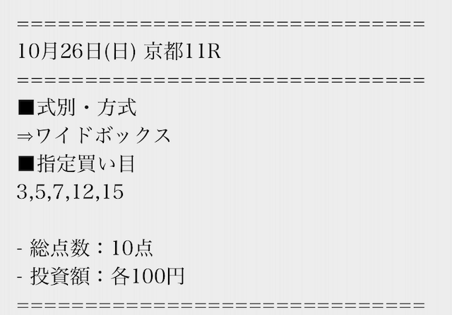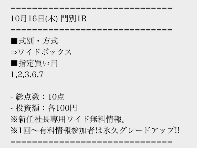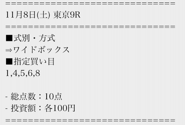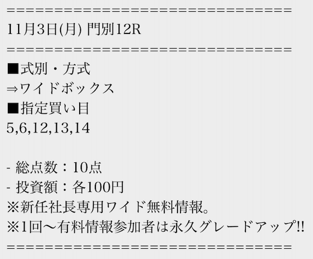 買い目は無料で受け取ることができるので、まずは数レースの結果をチェックするところから始めましょう!