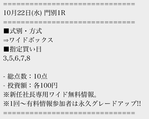 無料情報が馬単になるのは非常にありがたいです。