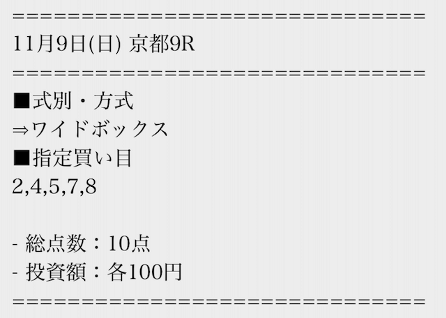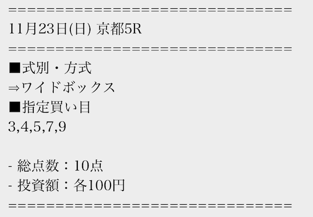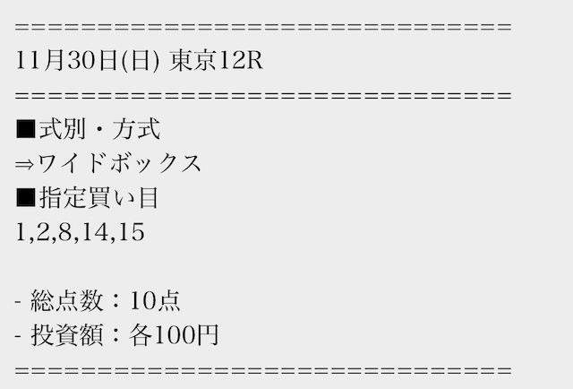 投資額は1点100円と記載されていますが、1点1,000円で勝負します!