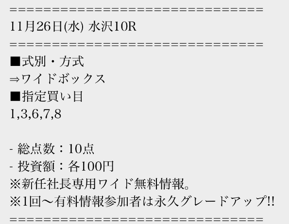 無料情報でも精度が高く、特に馬単に変わってからは一段と読みごたえを感じています。