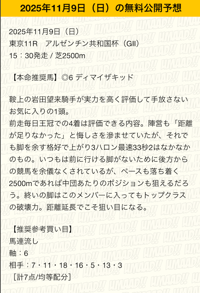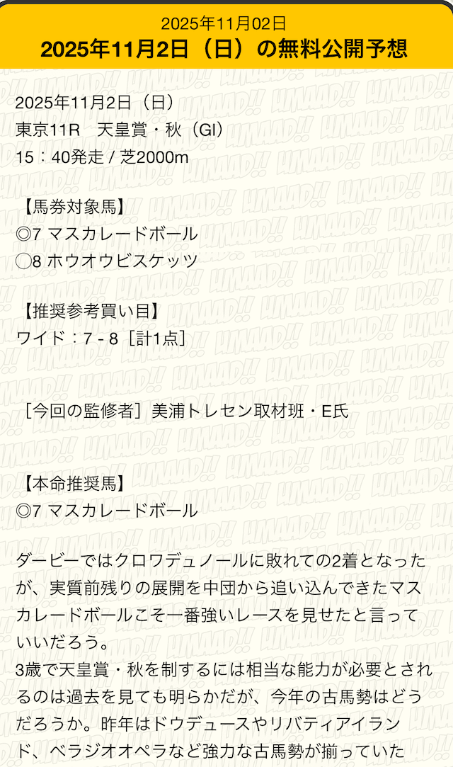 また、地方競馬の予想がないらしくやや物足りなさを感じますね。
