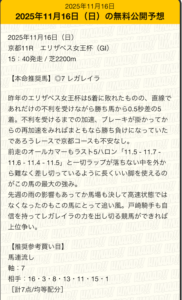 無料予想で1戦目だけ外しちゃったけど、そのあとは怒涛の7連勝