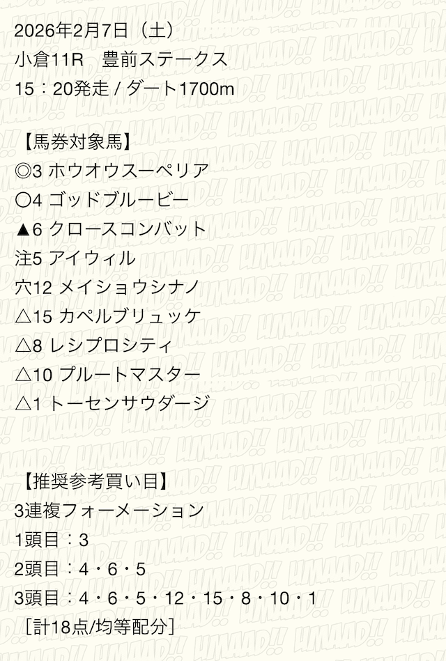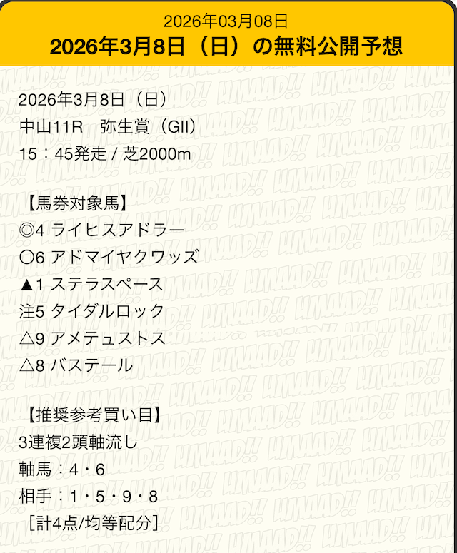 うまあどの有料予想「ホスピタリティ」に参加