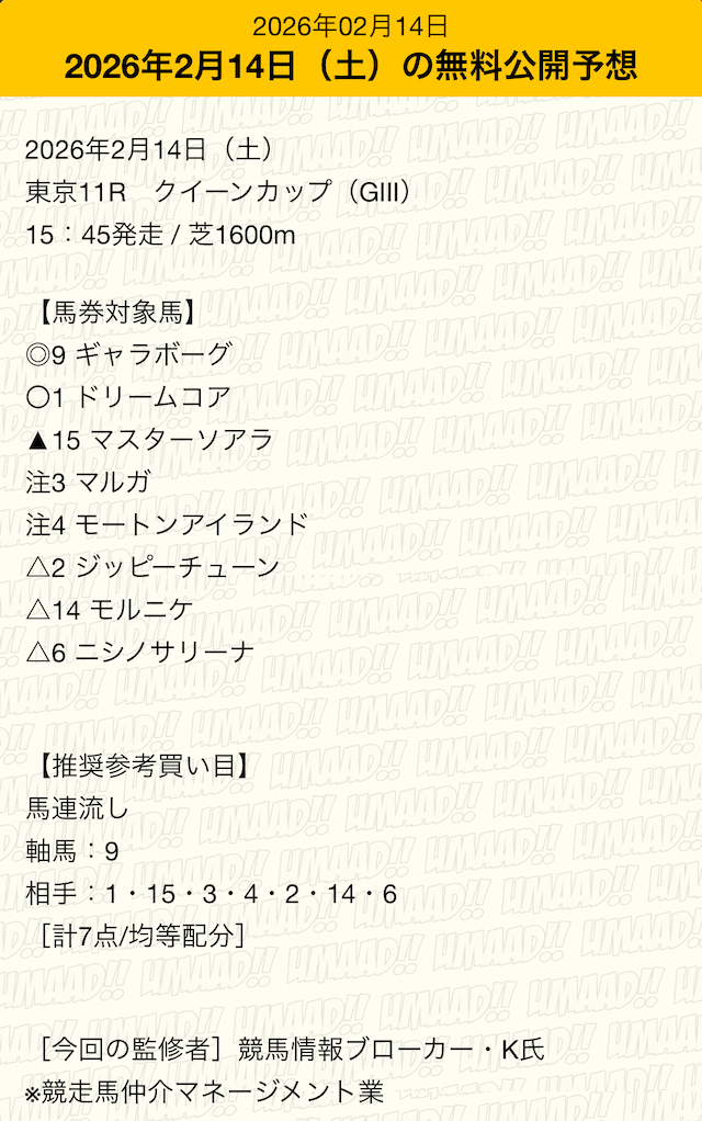 それでは無料予想から見ていきましょう。