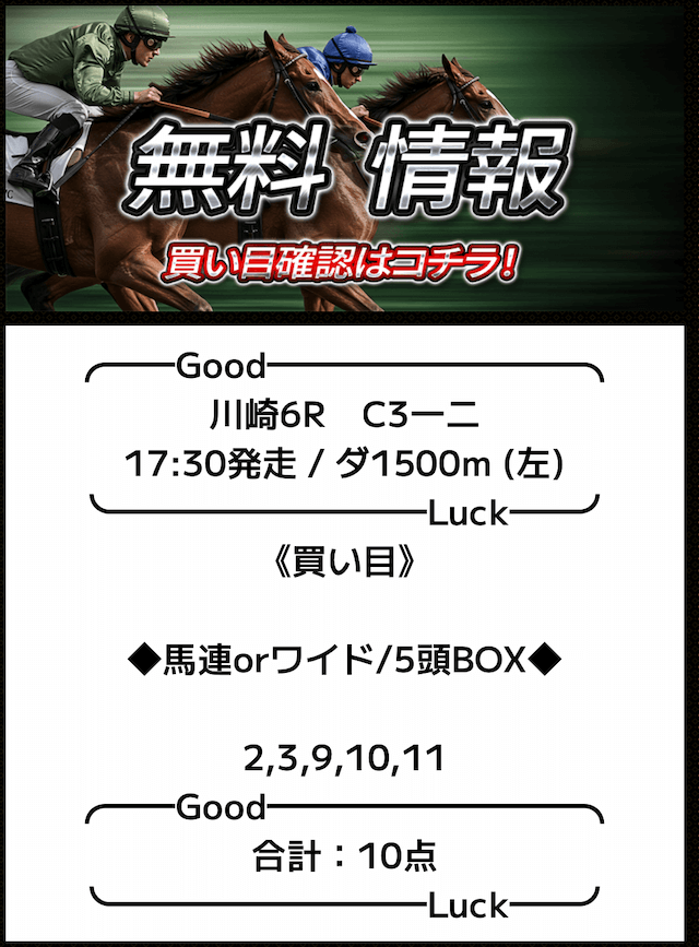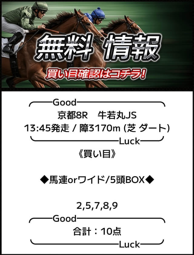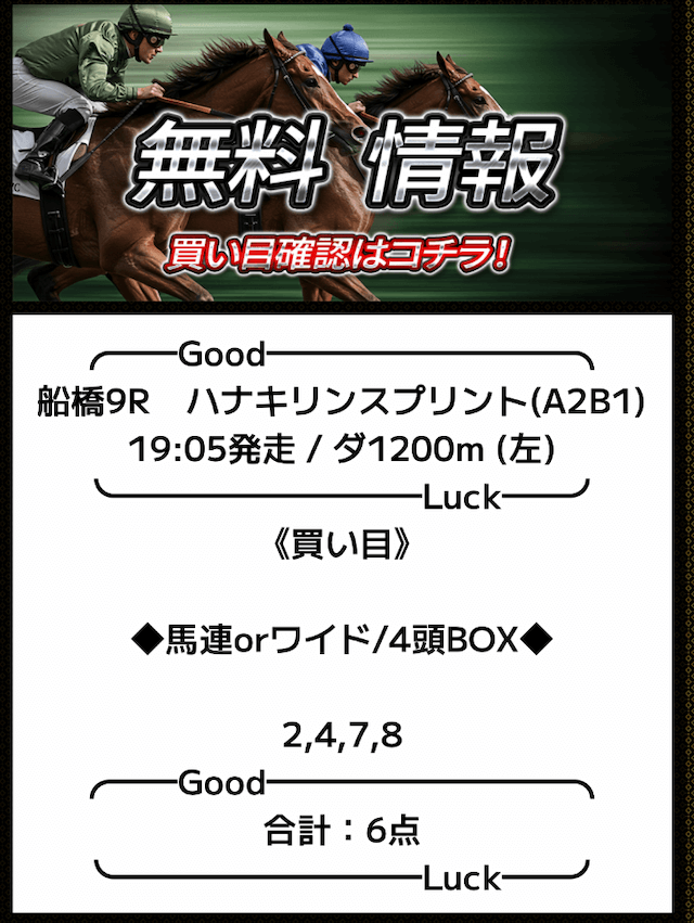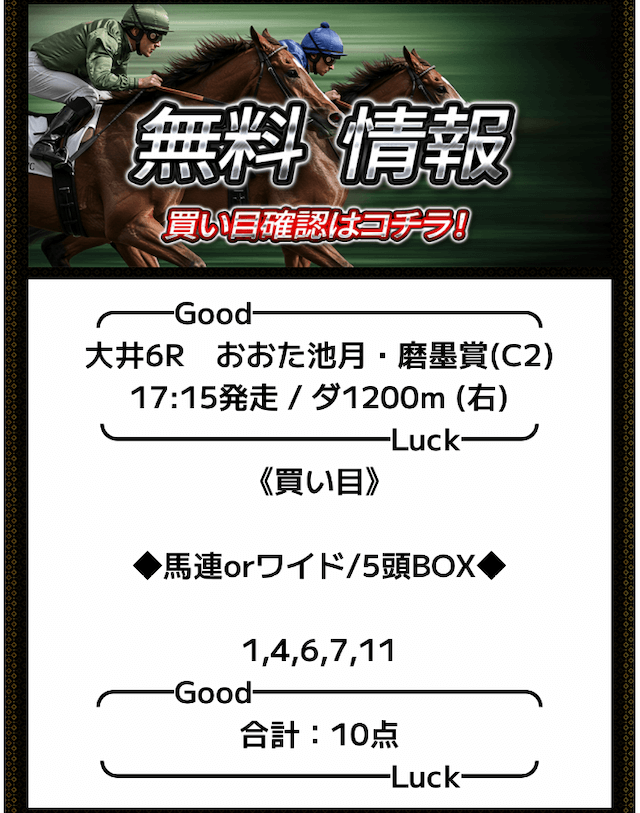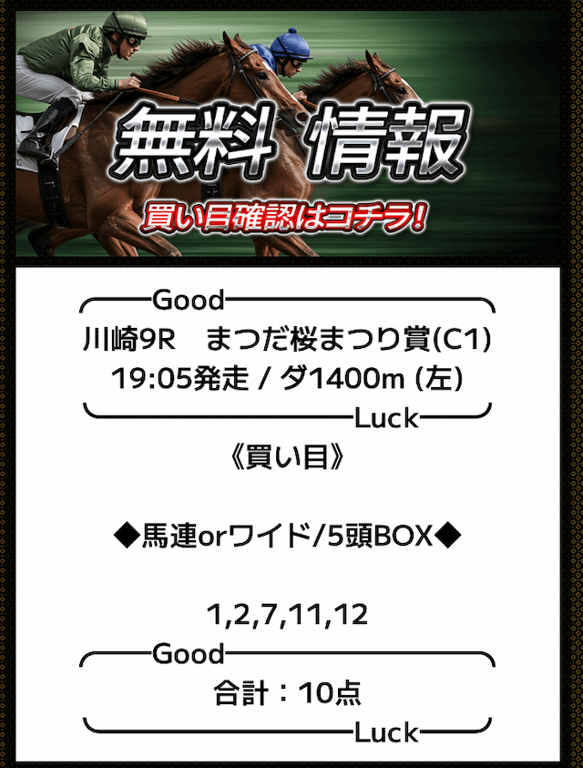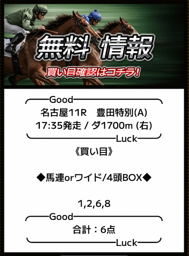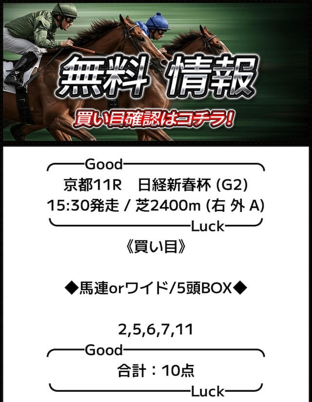 正直あんまり期待してなかったけど、無料の買い目がまさかの的中。しかもそこそこ配当ついてビックリ。タダでこれはマジありがたい。