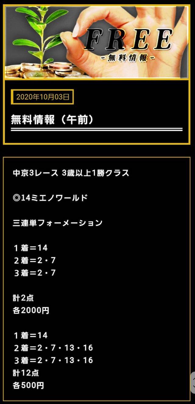 当たる・稼げる予想を公開してくれれば、かなりお得な特典と言えるでしょう。