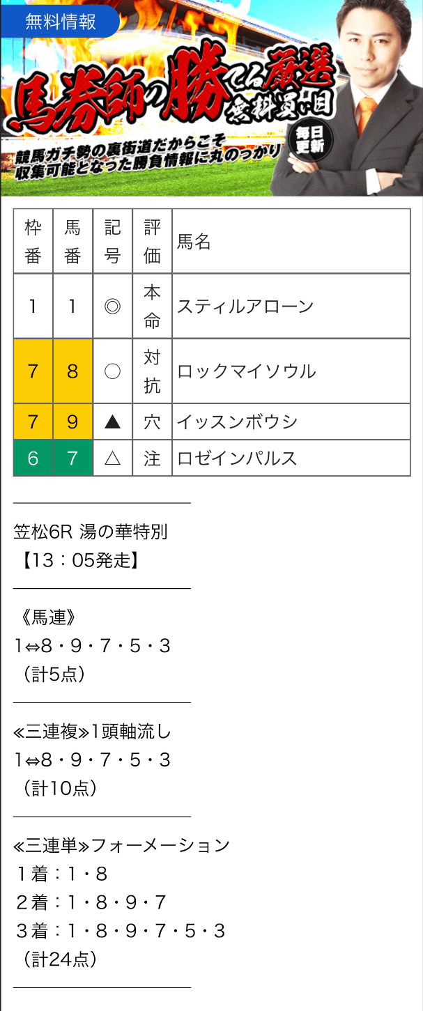 - 無料予想の参加数No.1!競馬裏街道のリアルな成績