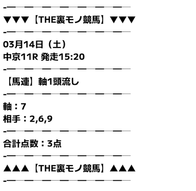 | 2026/03/14/ 中京 | | 3,000円 | 3,000円 | +0円 |