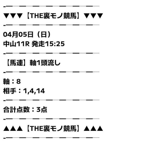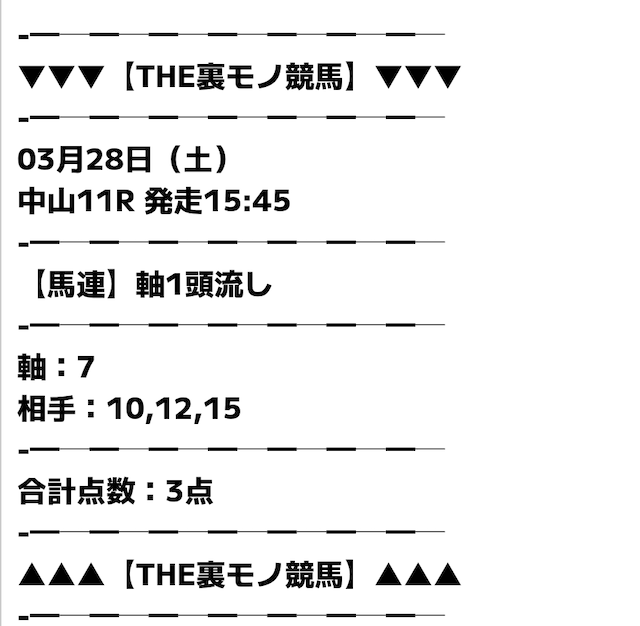 無料予想でもしっかり当たるのが素直にすごいと思った。点数が少なくて馬券代も安いから、無理なく続けられるのが良い。