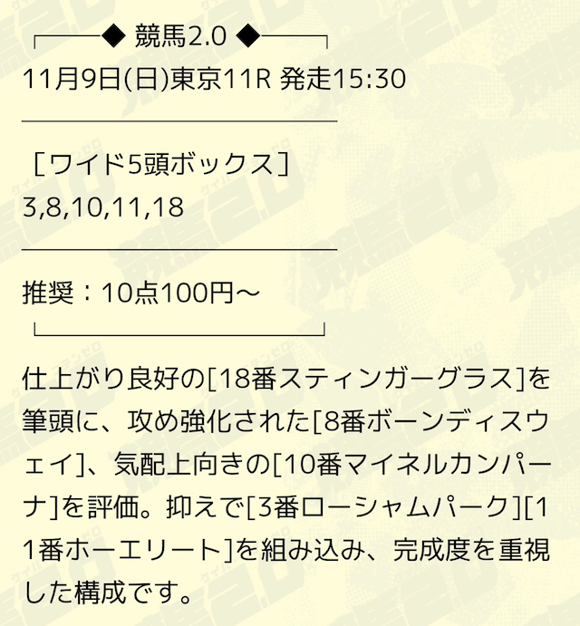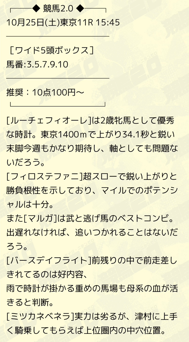 今回も券種は変わりませんでした。レースに対する見解も記載されていました。